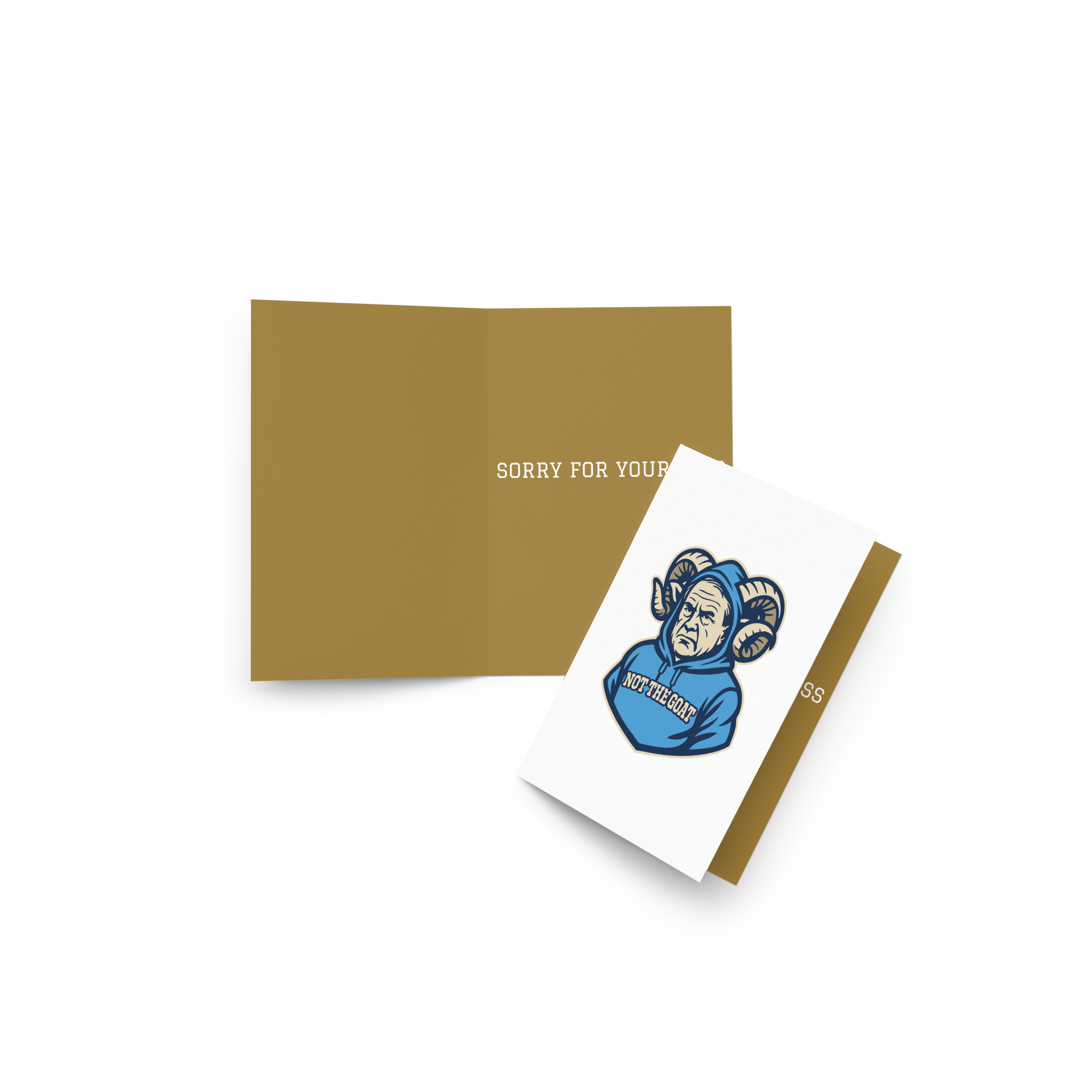 Featuring Belichoke’s Hill Billy on the front, and a perfect post-game “Sorry for Your Loss” on the inside. Send it to your favorite fleeced fan.