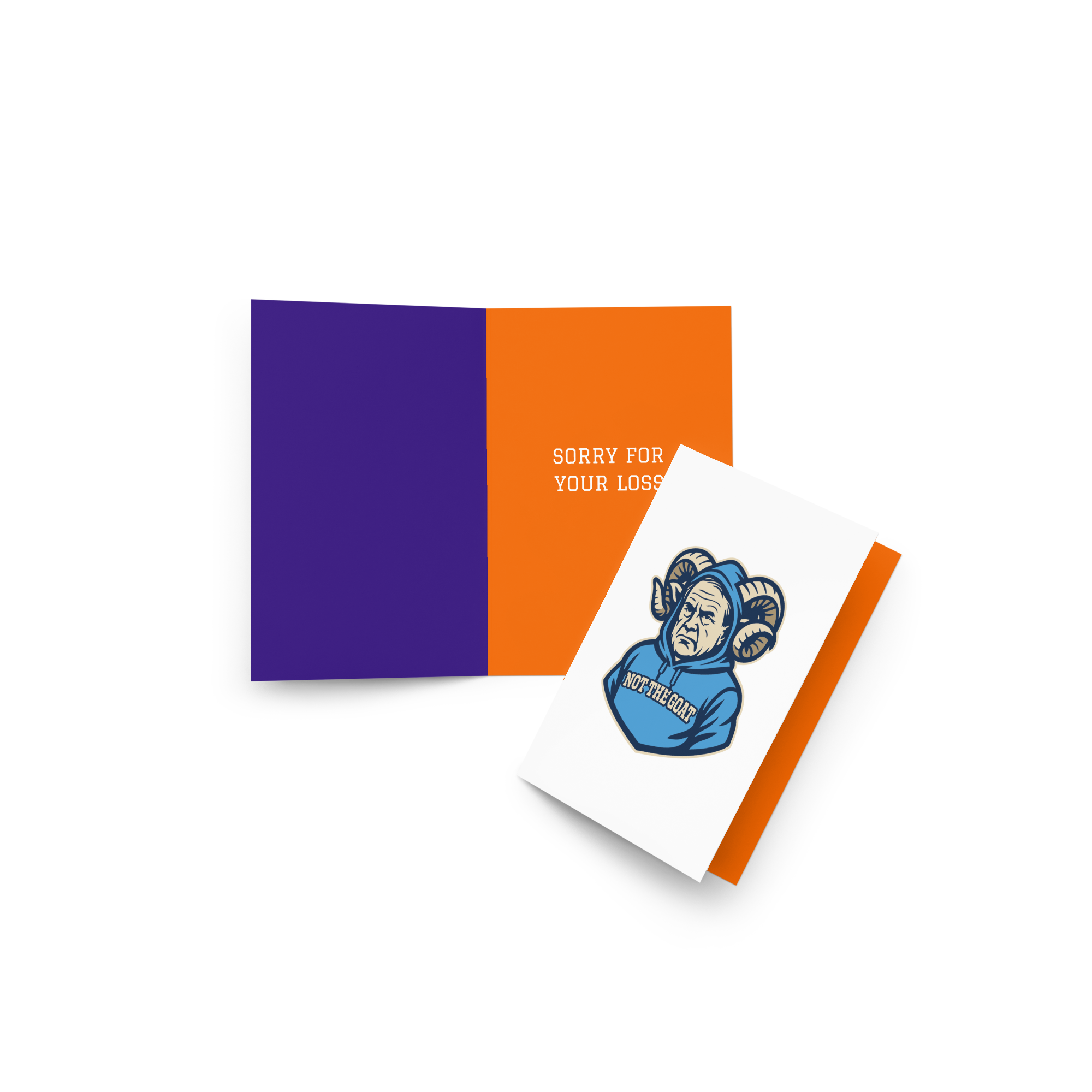 Featuring Belichoke’s Hill Billy on the front, and a perfect post-game “Sorry for Your Loss” on the inside. Send it to your favorite fleeced fan.